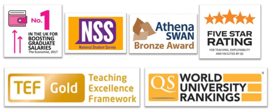 英国教学卓越框架(Teaching Excellence Frame-work, TEF)评选中,荣获优质教学金奖,成为英国东南部荣获金奖的四所大学之一